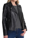 Description Online Only - A feminine biker look with a layered hem is found in this asymmetrical-zip leather...