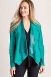 Reversible, lightweight leather jacket with cascading open front Made from Italian goat suede with smooth Napa goat leather...