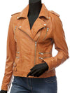 Womens Tan Leather Biker Jacket Description: If you like to stay slim-fit and contemporary, then try out our...