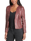 DESCRIPTION Outer Shell: Real LeatherLeather Type: LambskinLeather Finish: Semi-anilineInner Shell: Quilted viscose liningClosure Style: ZipperCollar Style: Band with...