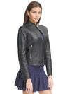 DESCRIPTION Outer Shell: Real LeatherLeather Type: SheepskinLeather Finish: Semi-AnilineInner Shell: Quilted viscose liningClosure Style: ZipperCollar Style: High neck with...