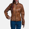 DESCRIPTION Outer Shell: Real LeatherLeather Type: Cow hideLeather Finish: Pull-upInner Shell: Quilted viscose liningClosure Style: ZipperCollar Style: Band...