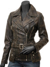 Distressed Brown Vintage Leather Motorcycle Jacket Womens Description: Look old school and yet classy in our distressed brown...