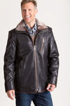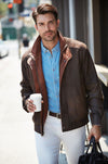 Zip into this double-collared leather bomber jacket, a classic wardrobe piece that takes you from season to season...