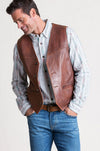 Add western-inspired style to every day with this versatile leather vest Made from distressed lambskin leather, button-front closure,...