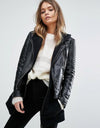 PRODUCT DETAILS Biker jacket by Goosecraft Smooth leather Fully lined Notch lapels Asymmetric zip fastening Stitched quilted sleeves Zipped cuffs...