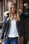 Quilted leather jacket with removable hood for on-the-go fashion Made from lambskin leather with soft padded poly fill...