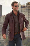 Handsome blazer-styled jacket blends tradition with innovation Made of smooth Moroccan lambskin leather and lined with soft, insulating...