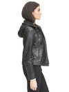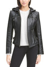 Online Only - Diamond-shaped quilting adds feminine flair to this hooded leather cycle jacket. Give your outerwear collection...